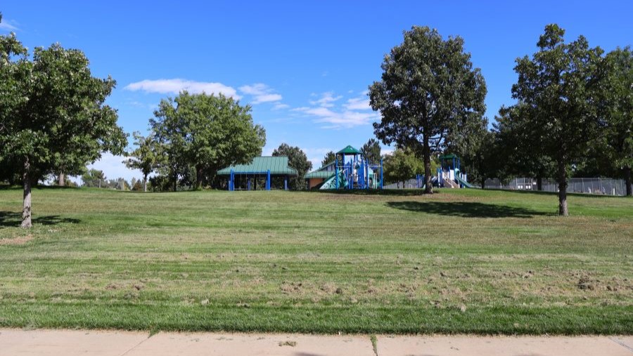 A park playground at the top of a hill